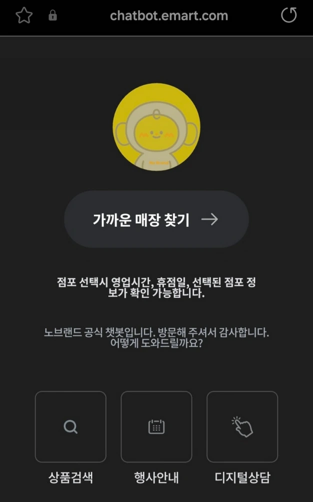 노브랜드는 별도 앱이 없습니다. 대신 고객센터 전화로 문자링크를 받거나, 이마트몰 앱·홈페이지에서 노브랜드 상품을 검색해 재고를 확인할 수 있습니다.