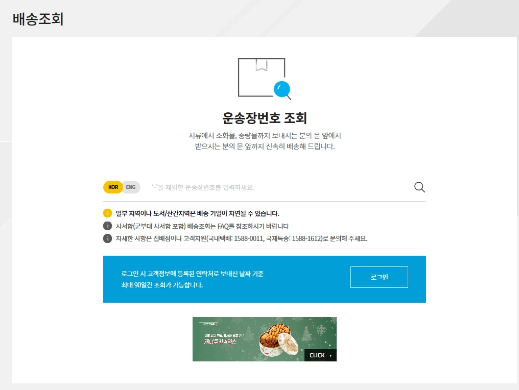 참고: 일요일은 모든 택배사가 배송을 하지 않기 때문에 한진택배도 일요일은 배송이 되지 않습니다.