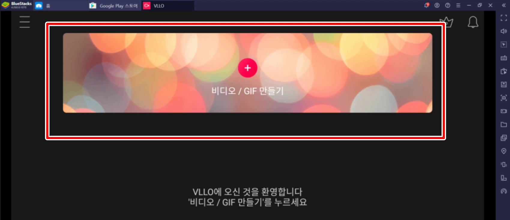 블루스택은 가장 많이 쓰이는 안드로이드 에뮬레이터로, 윈도우와 맥 모두에서 사용 가능합니다. 블루스택을 설치하고 구글 플레이 스토어에서 VLLO를 다운받으면 PC에서 모바일 앱 그대로 사용할 수 있습니다.